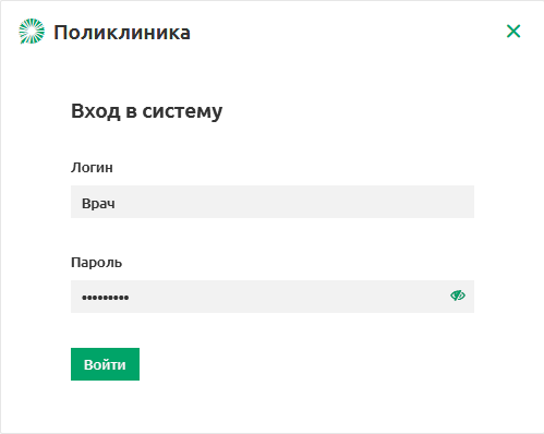 6.1. После нажатия "Регистрация пациента" появится окно входа\авторизации в системе.