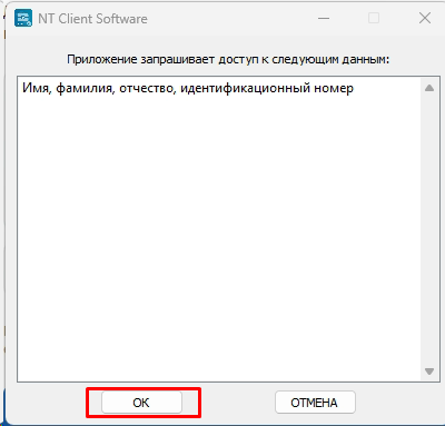 6.3. Появится окно программы NT Client, нажать кнопку "ОК".