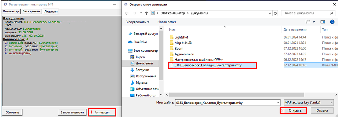 7. Получив ответ (в нашем примере 0383_Белоозерск_Колледж_Бухгалтерия.mky), сохраняем его на компьютер (в нашем примере Этот компьютер\Документы).