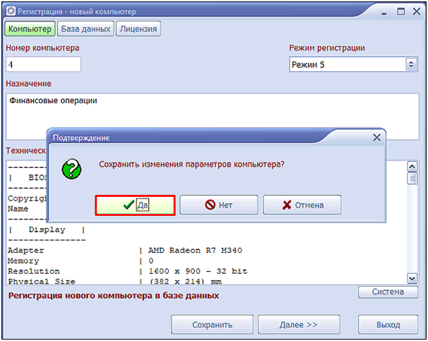 1. После установки сетевого клиента появится сообщение: Данный компьютер не зарегистрирован в подключаемой базе данных! Выполнить регистрацию?