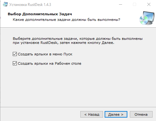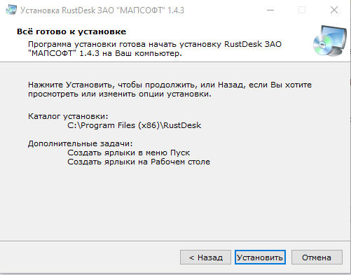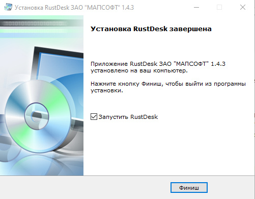 9. Если на предыдущем шаге осталась отметка «Запустить RustDesk», то после этого автоматические запустится программа. Также программу можно запустить через ярлык на рабочем столе.