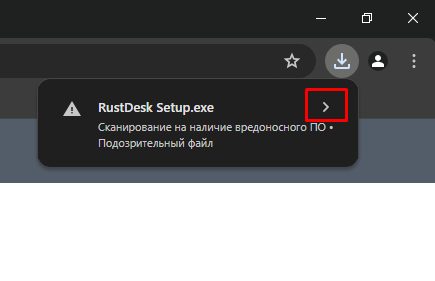 Если возникает уведомление о том, что файл является подозрительным, необходимо разрешить загрузку файла. Для этого нажимаем символ «>» как на скриншоте ниже.