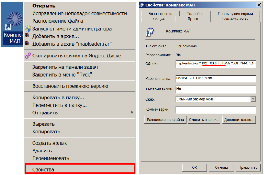 1. Нажимаем на ярлык (на компьютере, на котором работает программа) правой клавишей мыши.
